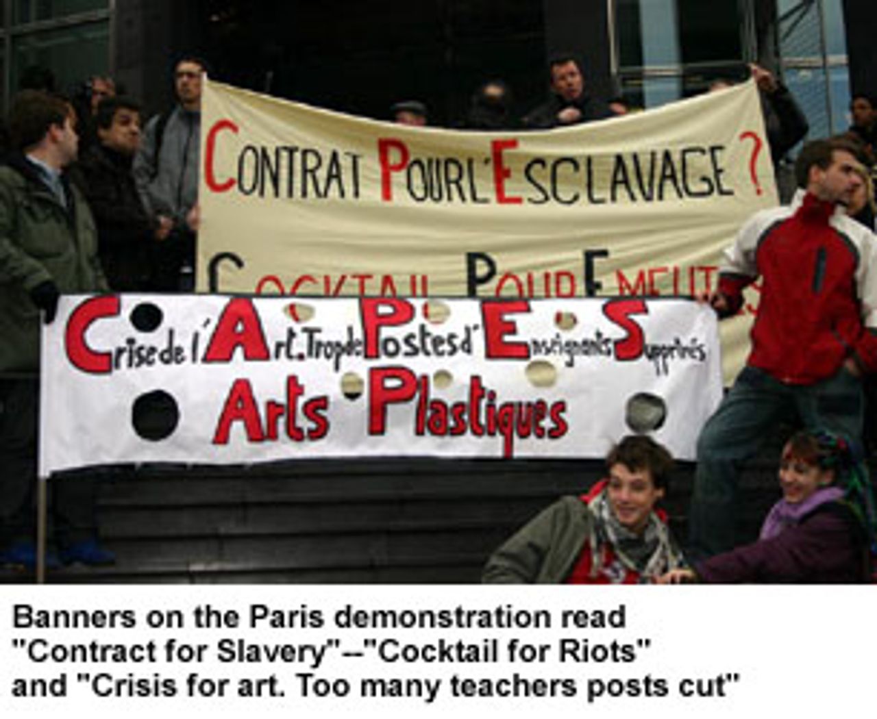 Die Demonstrationsteilnehmer machten auf Plakaten und Transparenten deutlich, was sie vom CPE halten. Da stand: "CPE: Arbeitsvertrag für Sklaverei", "Erster Vertrag zur Ausgrenzung", "Unsere Generation will sich nicht opfern lassen". Unter der Abbildung eines jungen Arbeiters, der in eine Mülltonne gesteckt wurde, stand der Kommentar: "Wegwerfjugendliche". Die Aufschrift "Cocktail zum Aufruhr" bezog sich auf die Jugendrevolte vom Oktober und November im vergangenen Jahr.
