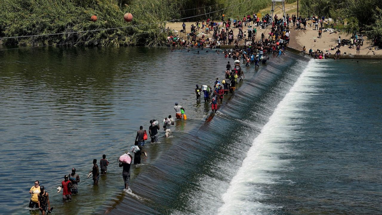 Haitian migrants use a dam to cross into the United States from Mexico in Del Rio, Texas. (AP Photo/Eric Gay, File)