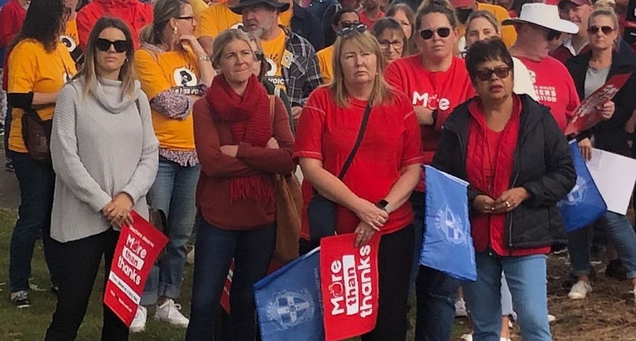 Striking teachers at Tweed Heads rally