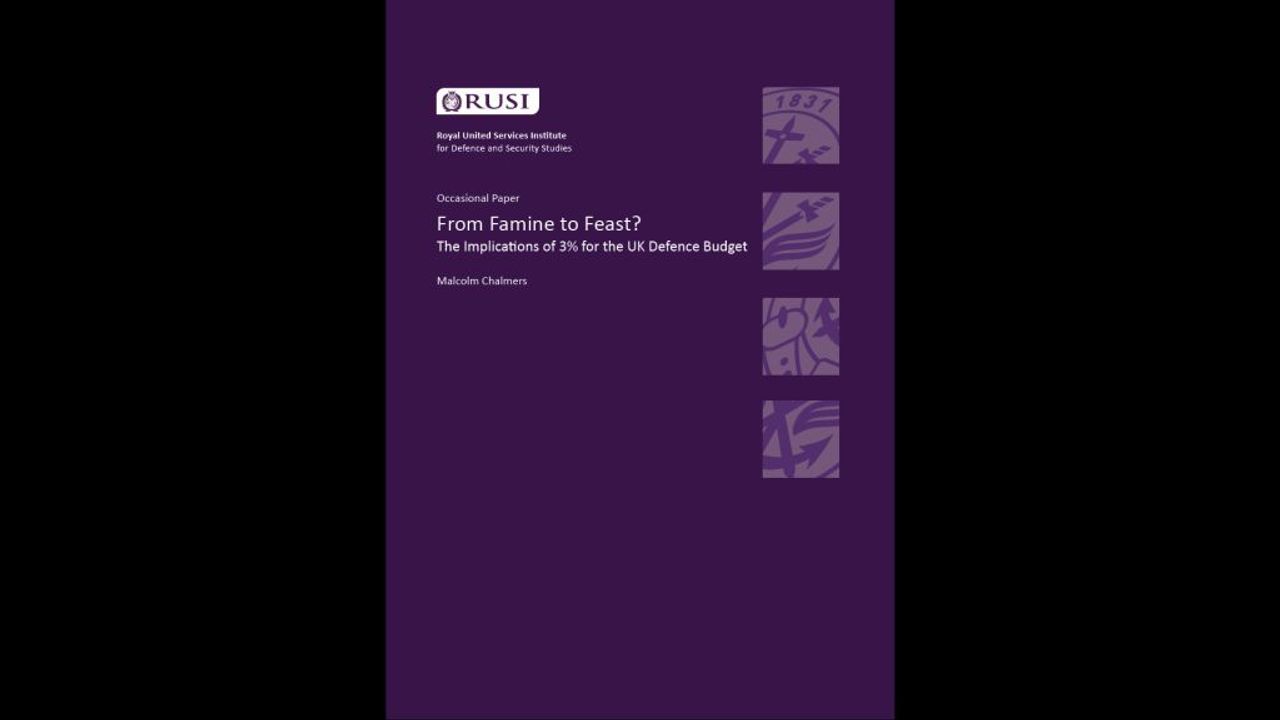 The pledge means a enormous ramping up of arms spending. This is the conclusion drawn by the Royal United Services Institute for Defence and Security Studies (RUSI) in its occasional paper, “From Famine to Feast?: The Implications of 3% for the UK Defence Budget.”