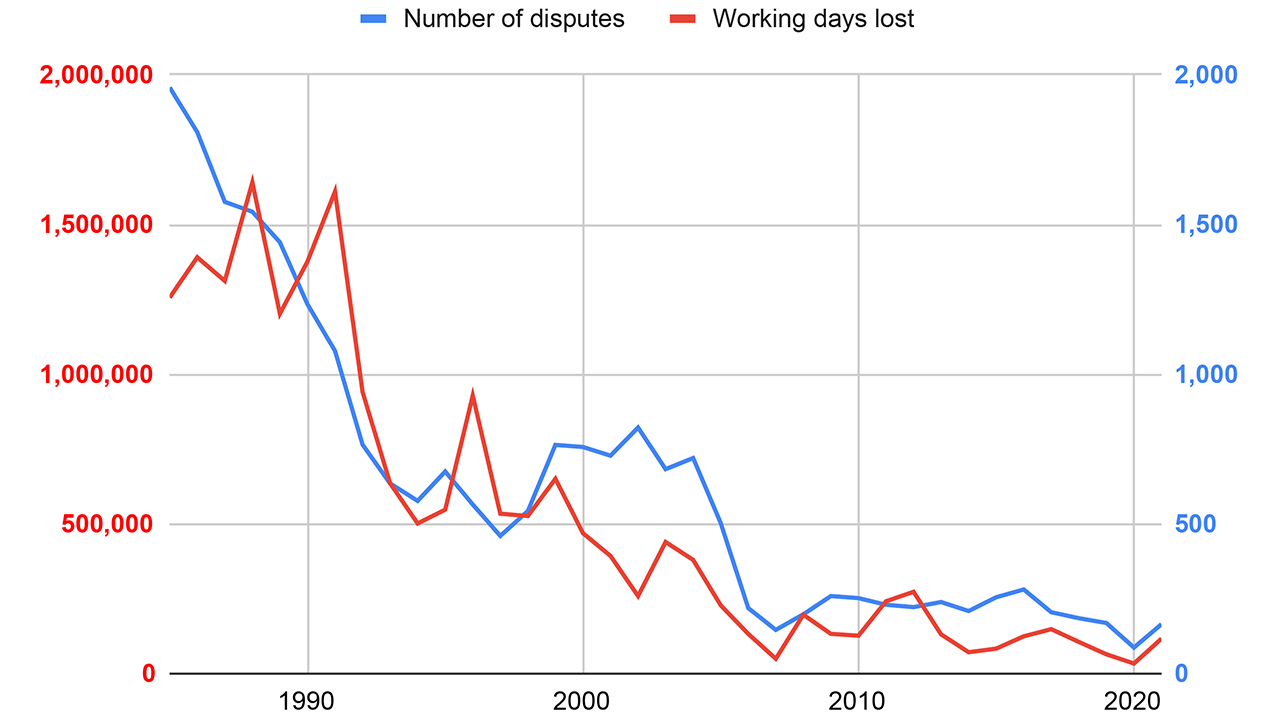 Since December last year, numerous mass strike rallies have been held around the country. In the year ending June 2022, industrial disputes resulted in the loss of 234,700 working days, more than the combined total from January 2018 to June 2021.