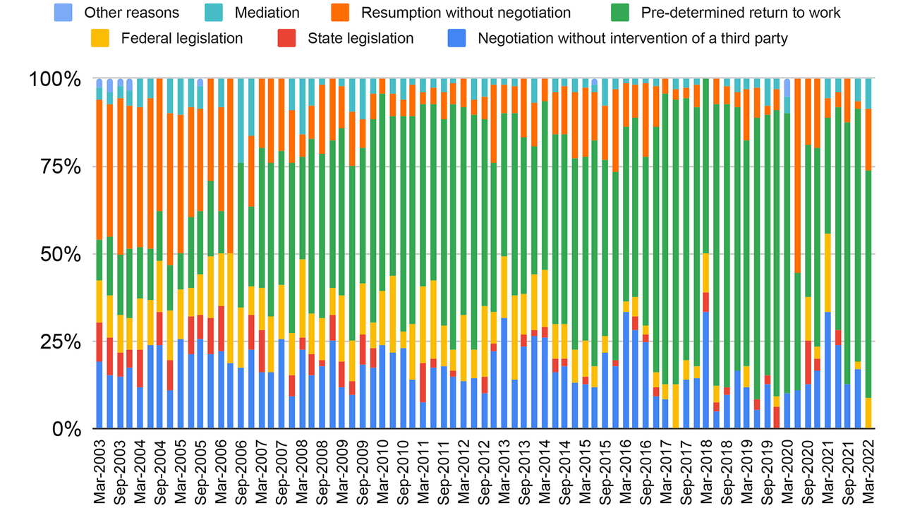 In the first quarter of 2020, with the COVID-19 pandemic playing only a minor role, strike ballots were held at 84 workplaces. Two years later, at the height of the first Omicron wave, 146 ballots were held in the first quarter of 2022. In the following three months, 175 workplaces held strike votes.