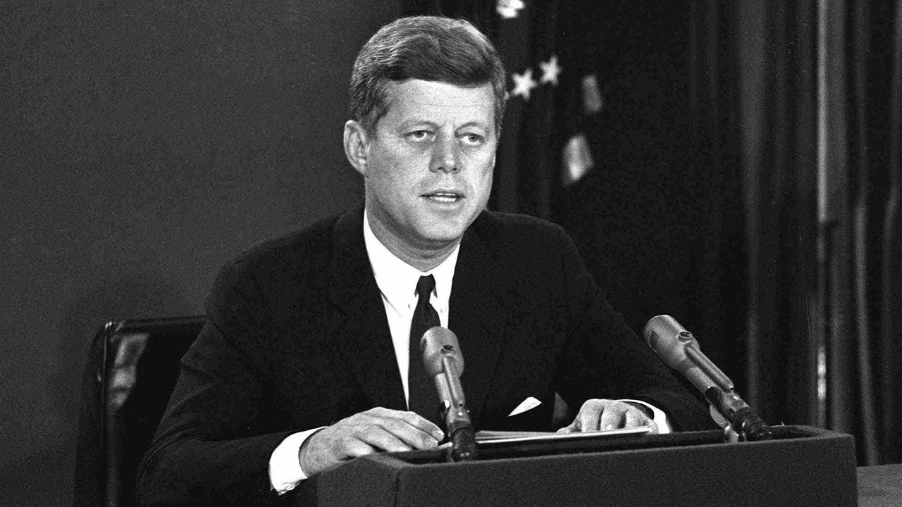 President John F. Kennedy makes a national television speech from Washington on Oct. 22, 1962. [AP Photo]