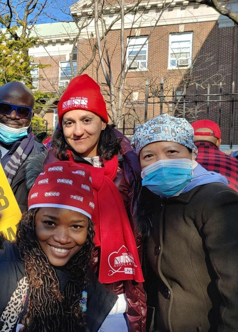 “We want what is fair,” she continued. “During COVID, we didn’t ask for a penny. We stood up as heroes. We asked for PPE. We respected our contract. We respected our nurses’ vow. We supported our hospital. We supported the community. We had our nurses die from COVID, and our own nurses brought illness home to their grandparents who died from COVID. What does Mt. Sinai say about that? What does the administration say about that? No, we’re not going down again. That’s it.”