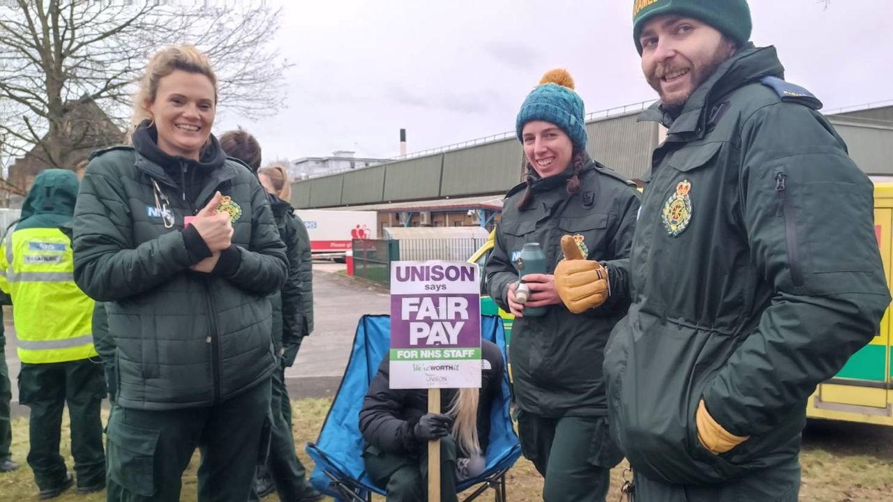 “The government says our strikes aren’t safe. Today we have ambulances waiting to take calls. It’s not us putting lives at risk, it is the government, through their cuts. They could have prevented this if they gave us a decent wage rise we can live off. The government won’t back down and this will continue throughout the country, across other sectors like the rail.