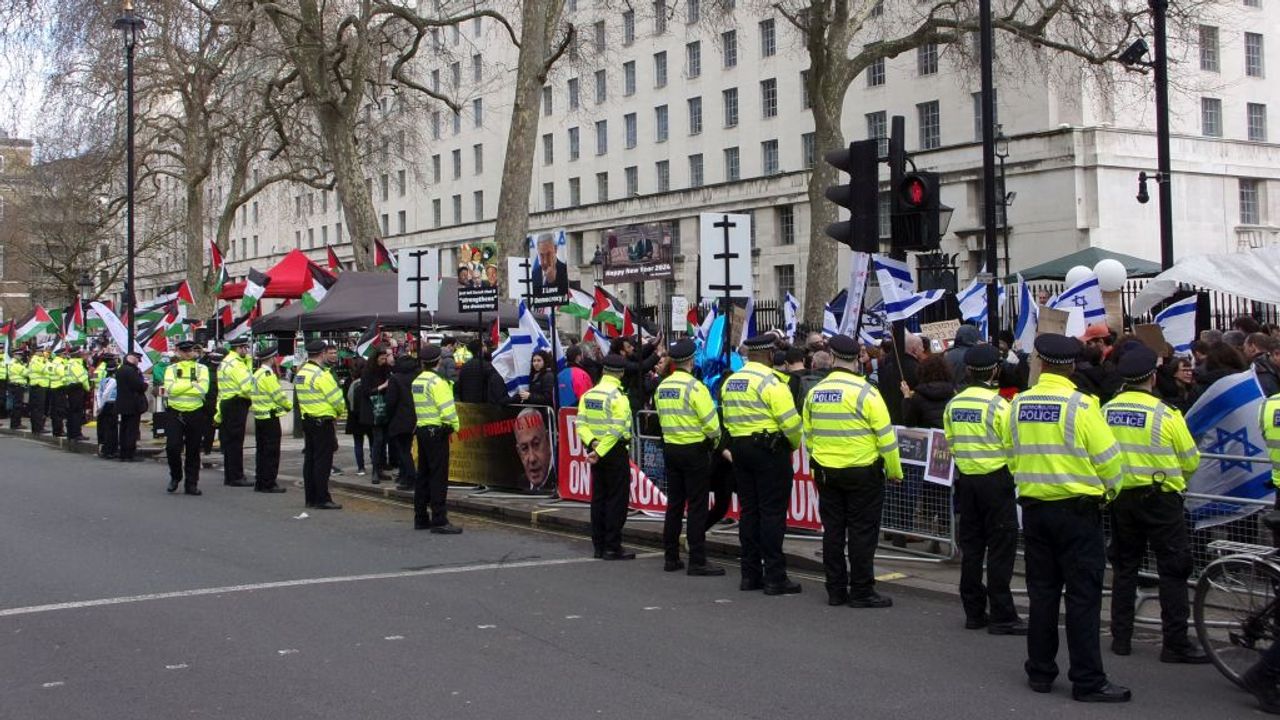 The visit by Israeli Prime Minister Benjamin Netanyahu to meet with his UK counterpart Rishi Sunak saw protests by Palestinians and their supporters, and by British Jews and expat Israelis outside the British prime minister’s official residence at 10 Downing Street.