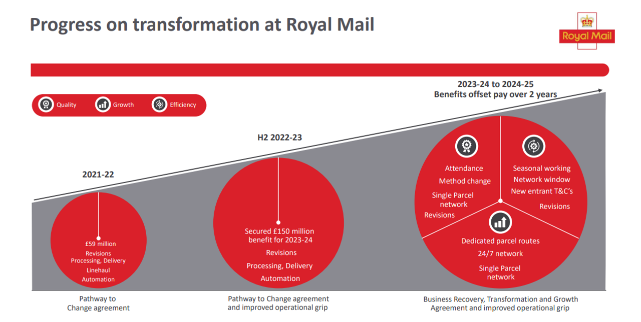 The overall message was clear: while Royal Mail has taken a hit, this is partly strategic, including capital investment into parcel modernisation of £1.4 billion over the past five years. Williams concluded, “The investment phase is now complete for Royal Mail, and so we need to focus on maximising the returns from those investments, including the two new Super Hubs. Our Northwest Super Hub opened in June last year, and next year we are opening our Midland Super Hub.” IDS’s deal with the CWU aims to “maximise return on investment”.