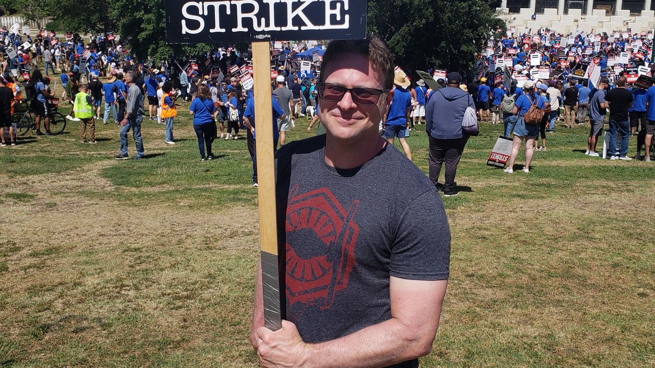 In light of their recent backstab, DGA leaders did not deign to send any active high-level official to the rally. Instead former DGA President Thomas Schlamme was on hand to issue a short statement proclaiming the DGA’s alleged “support” for the strike.