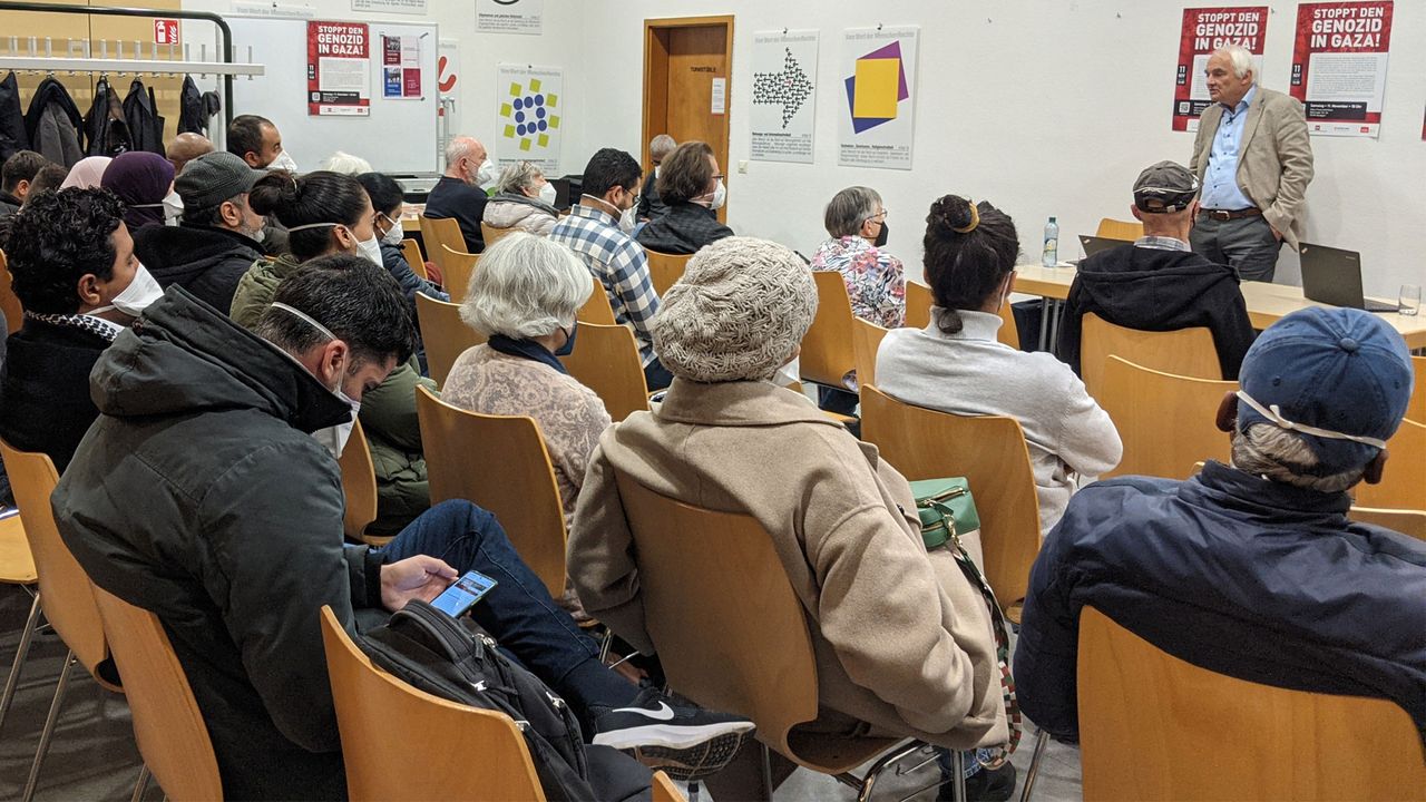 In the course of his lecture, Schwarz rejected the omnipresent war propaganda, which has been trivializing the crimes of the Nazi dictatorship and slandering any opposition to Israel’s bombing terror as “antisemitic.” While the German government is carrying out unprecedented rearmament, doubling the military budget and rejecting even the demand for a “ceasefire,” the police are acting arbitrarily and aggressively against anyone who opposes the massacre in Gaza. At the same time, Schwarz placed the events in the context of the NATO war campaign against Russia, China and Iran.
