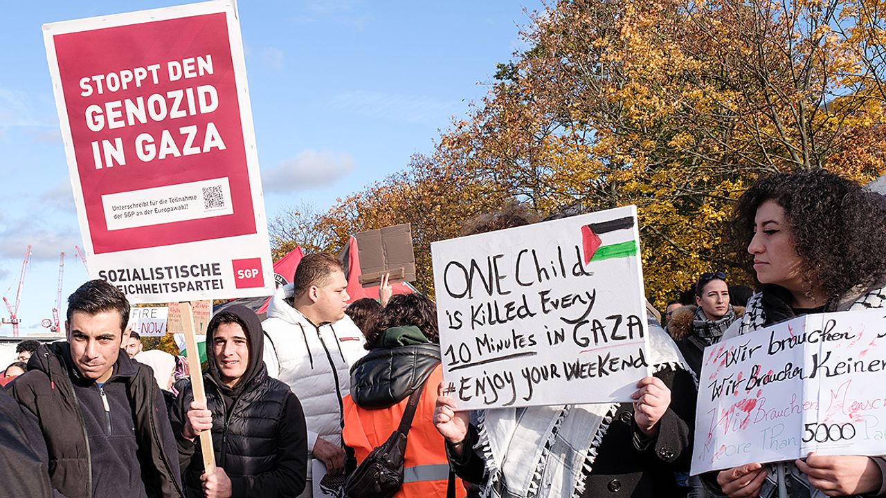 People also took to the streets in many other cities last weekend. There were about 1,000 in Leipzig, over 2,000 in Stuttgart and more 1,500 in Düsseldorf. In Hamburg, all protests against Israel’s ethnic cleansing have been banned for five weeks. “Pro-Palestinian” meetings are prohibited by general order of the police. This edict, first issued on October 16 for three days, has been extended nine times since.