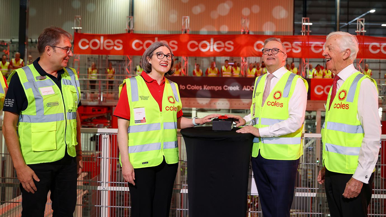 The 66,000 square metre facility at Kemps Creek is the second of two built by Coles in a $1 billion capital investment aimed at slashing labour costs throughout the company. The first was opened in April 2023, at Redbank near Ipswich in the state of Queensland.