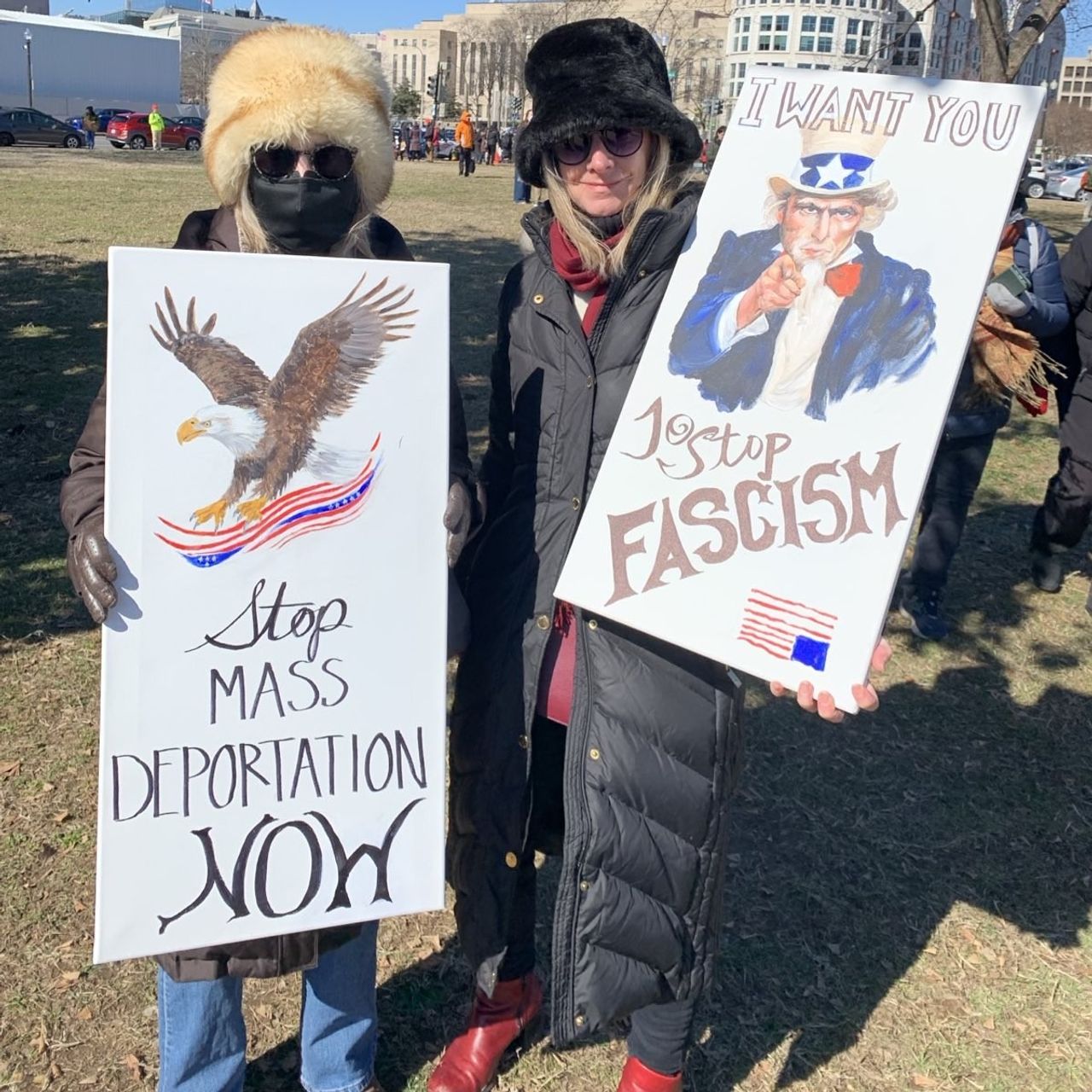 Protesters carried many signs denouncing different anti-democratic and fascistic aspects of the Trump administration. Some called for Musk to be fired and the “Department of Government Efficiency” (DOGE) eliminated. Others carried signs in support of immigrants: “Immigration built this nation!” Another sign read, “There is no LGB without the T” in reference to Trump’s fascist attacks on transgender people and science, in general.