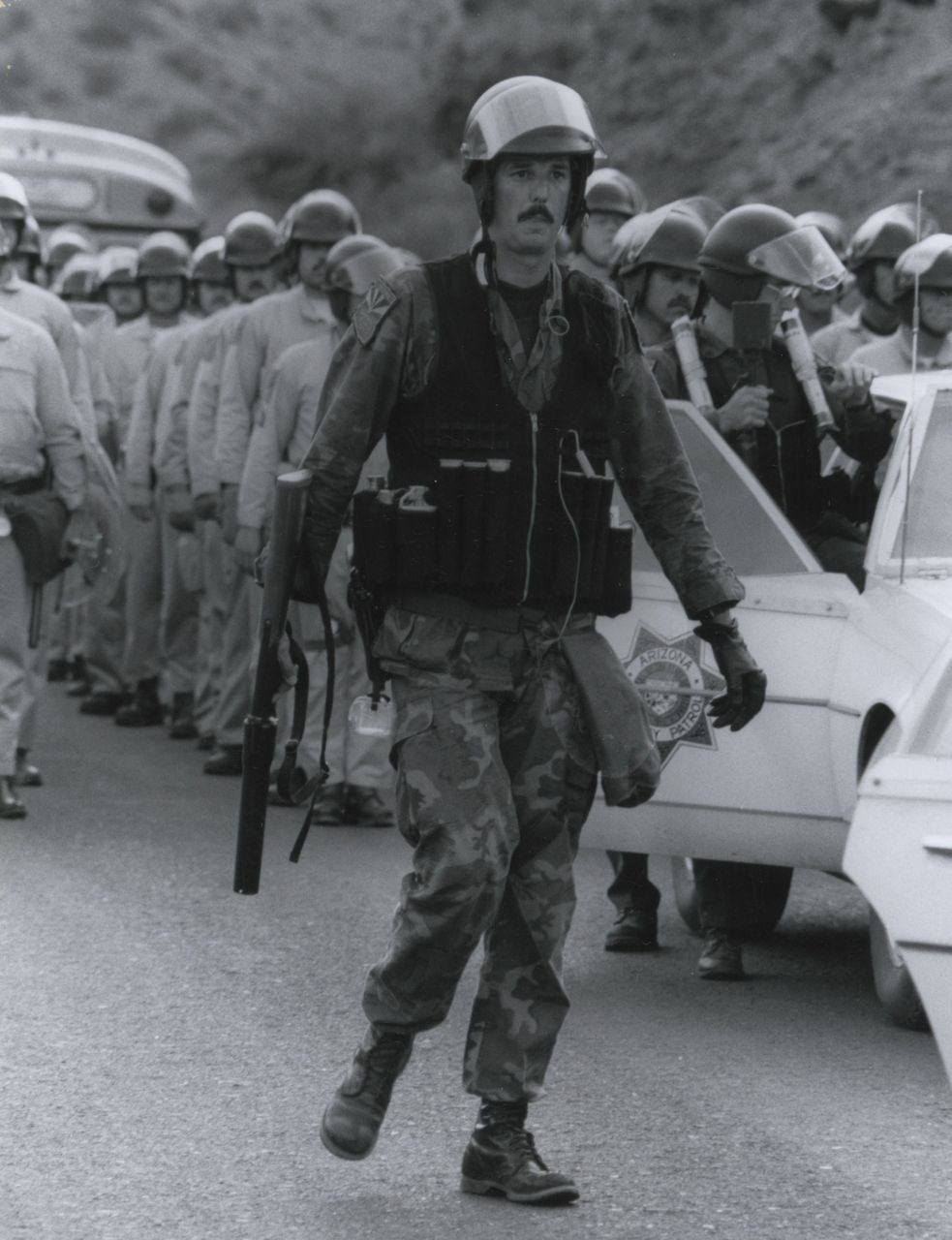 Para llegar a la mina hay que pasar por Clifton. Y también la gente de Clifton eran trabajadores, mineros. Así que pusimos el piquete ahí, y teníamos ante nosotros a los esquiroles y a la policía. Los rompehuelgas no pudieron pasar hasta que enviaron a la Guardia Nacional. Éramos no violentos. Nos hicimos oír, éramos malhablados, les poníamos motes a los rompehuelgas, y fue entonces cuando empezaron a construir un nuevo camino ante la entrada a Clifton. Tenían maquinaria y construyeron un camino antes de llegar a Clifton para poder entrar por el camino alternativo.