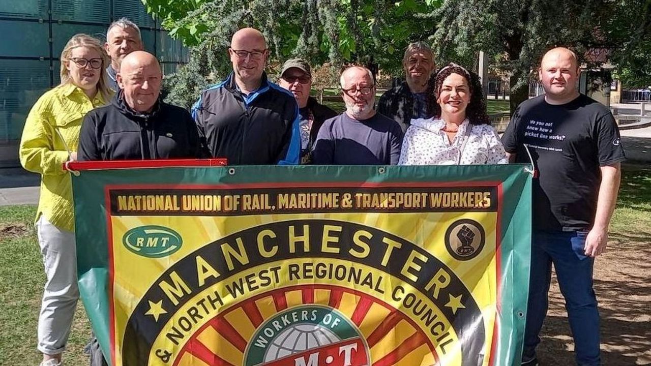 Huelguistas ferroviarios cerca de la estación Victoria en Manchester