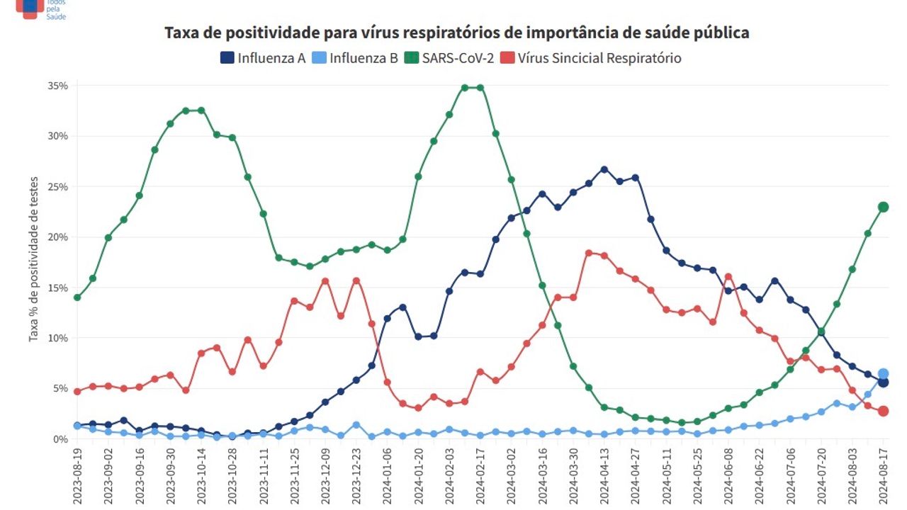 De acordo com o Ministério da Saúde, em 2024, foram registradas até agora cerca de 112 mil hospitalizações e 7 mil óbitos por SRAG, sendo que 25% desses óbitos foram por COVID-19.