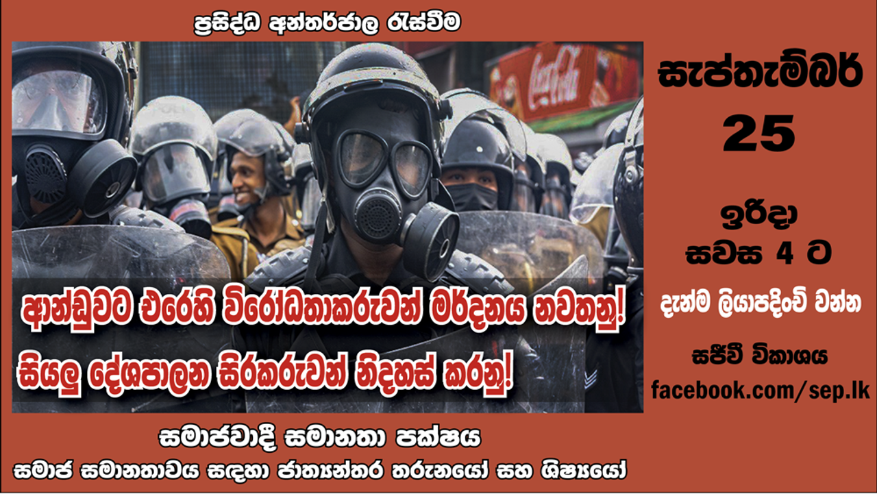 සමාජවාදී සමානතා පක්ෂය (ශ්රී ලංකාව) සහ සමාජ සමානතාව සඳහා ජාත්යන්තර තරුනයෝ සහ ශිෂ්යයෝ (සසජාතශි) ඉරිදා (අද) “ආන්ඩුවට එරෙහි විරෝධතාකරුවන් මර්දනය නවතනු! සියලු දේශපාලන සිරකරුවන් නිදහස් කරනු!” යන තේමාවෙන් පවත්වන අන්තර්ජාල රැස්වීමට සහාය දක්වන බොහෝ අදහස් අප වෙත ලැබී ඇත. රැස්වීමට මෙම සබැඳිය හරහා ලියාපදිංචි වන්න.
