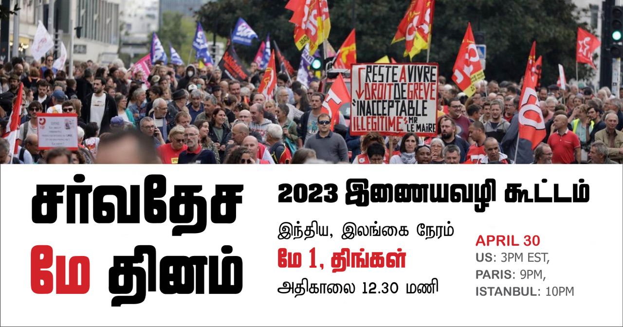 நான்காம் அகிலத்தின் அனைத்துலகக் குழுவும், சாமானியத் தொழிலாளர் நடவடிக்கை குழுக்களின் சர்வதேச தொழிலாளர் கூட்டணியும், சமூக சமத்துவத்திற்கான அனைத்துலக இளைஞர்கள் மற்றும் மாணவர்கள் அமைப்பும், உலக சோசலிச வலைத் தளமும் ஏப்ரல் 30, ஞாயிற்றுக்கிழமை, 2023 மே தினத்தைக் கொண்டாடும் வகையில் ஓர் உலகளாவிய இணையவழி கூட்டத்தை நடத்த உள்ளது.